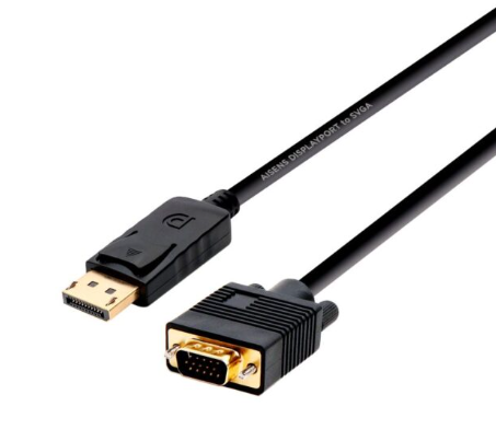 Cabo conversor DISPLAYPORT macho em uma extremidade e VGA D-SUB HDB15 macho na outra.