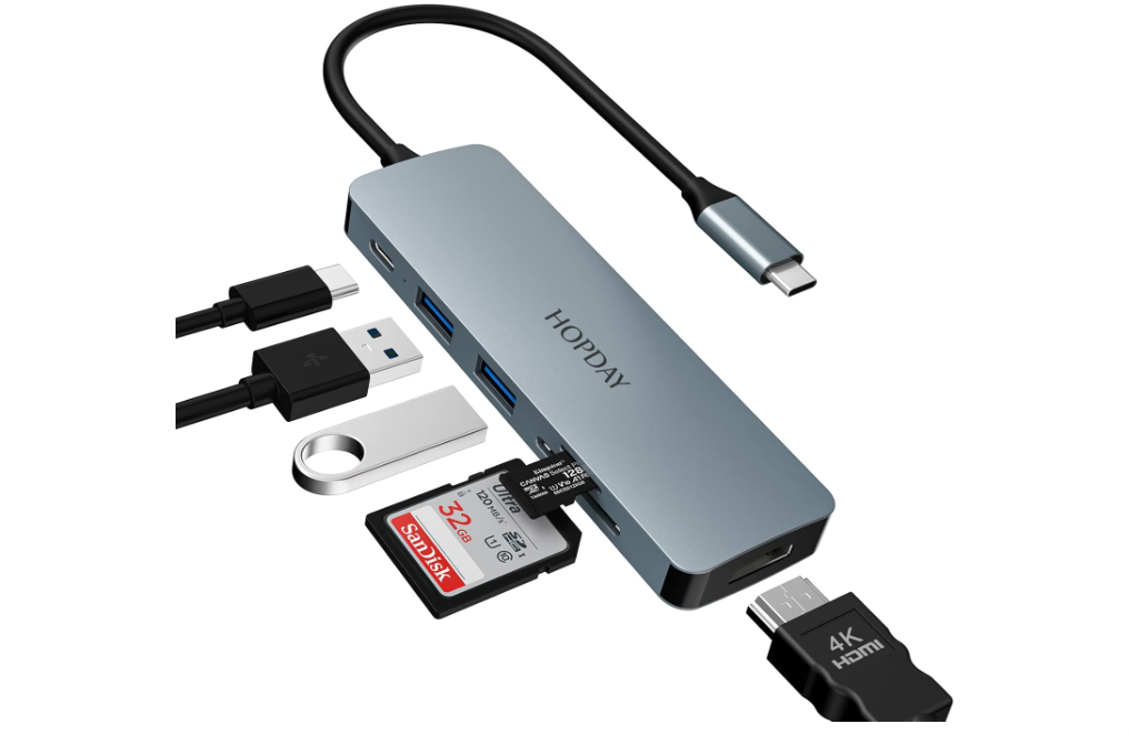 -6 em 1 adaptador multiporta USB-C para HDMI/USB-C PD/USB 3.0/SD/TF